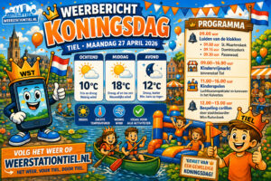 Koningsdag in Tiel belooft een prima en droge dag te worden met aangename temperaturen. Ideaal weer om naar buiten te gaan en te genieten van alle activiteiten in de stad.